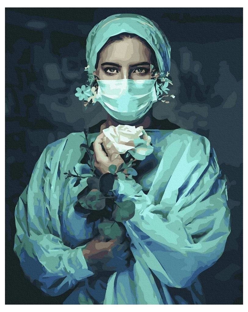 Malowanie po numerach - Pielęgniarka z różą 40x50