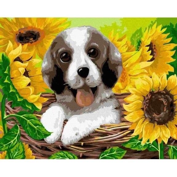 Malowanie po numerach - Szczeniak w Koszyku 40x50