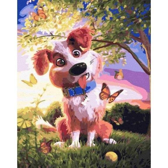 Malowanie po numerach - Pies i motyle 40x50cm