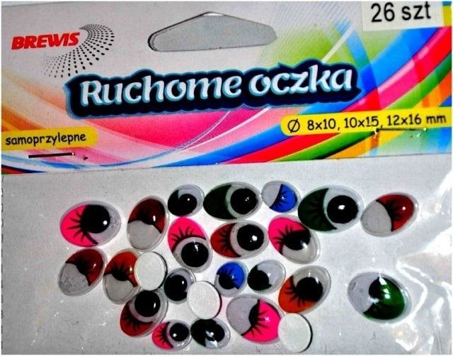 Ruchome oczka owalne z kolorowymi rzęsami 26szt