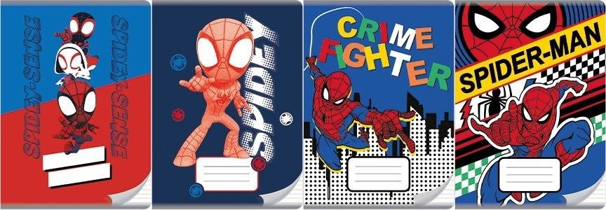 Opakowanie zbiorcze.Zeszyt A5, posiada 16 kartek o gramaturze 70 g/m2 w 3 kolorowe linie. Charakteryzuje się estetycznym, lakierowanym wykończeniem i okładką z serii Spider Man. Na zewnętrznej stronie okładki: imiennik - miejsce na wpisanie imienia, nazwiska, klasy. przeczytaj całość