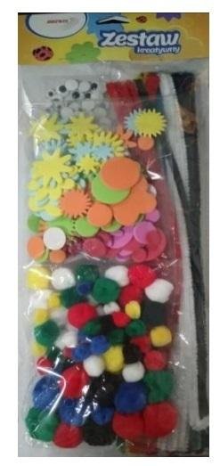 Zestaw kreatywny dużyw skład którego wchodzą:- pompony 78 szt.- naklejki z pianki 72 szt.- druciki kreatywne 40 przeczytaj całość