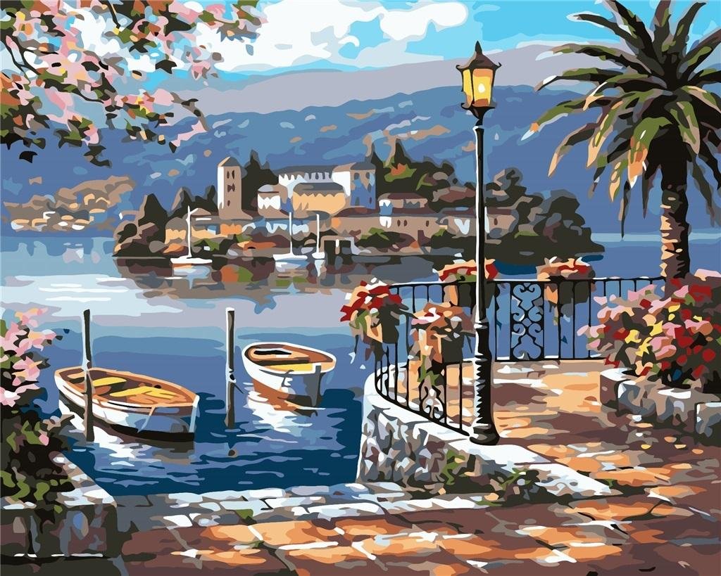 Malowanie po numerach - Wyspa i łodzie 40x50cm