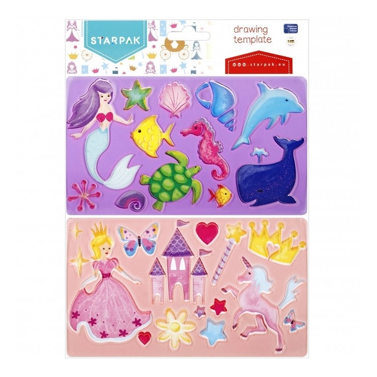 Szablon z kolekcji STARPAK Księżniczki. Szablon umożliwia dzieciom rysowanie precyzyjnych figur, kształtów a następnie zabawę, np. kolorowanie. Idealny podczas nauki poznawania nazw zwierząt czy planet. Wykonany z trwałego tworzywa. Zawartość zestawu: 2 x szablon. przeczytaj całość