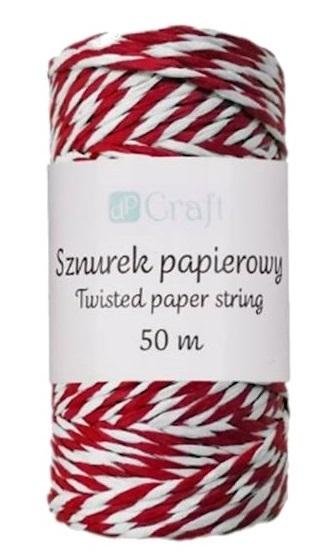 Sznurek papierowy skręcany czerwono-biały 50m