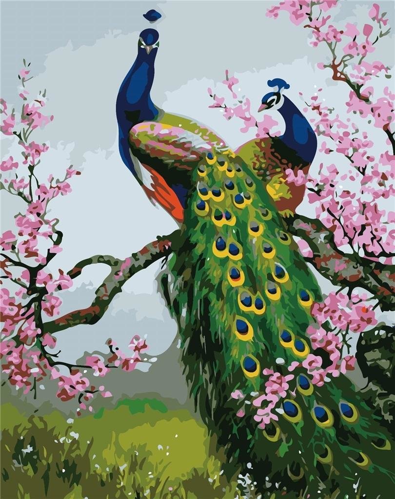 Malowanie po numerach - Pawie na drzewku 40x50cm