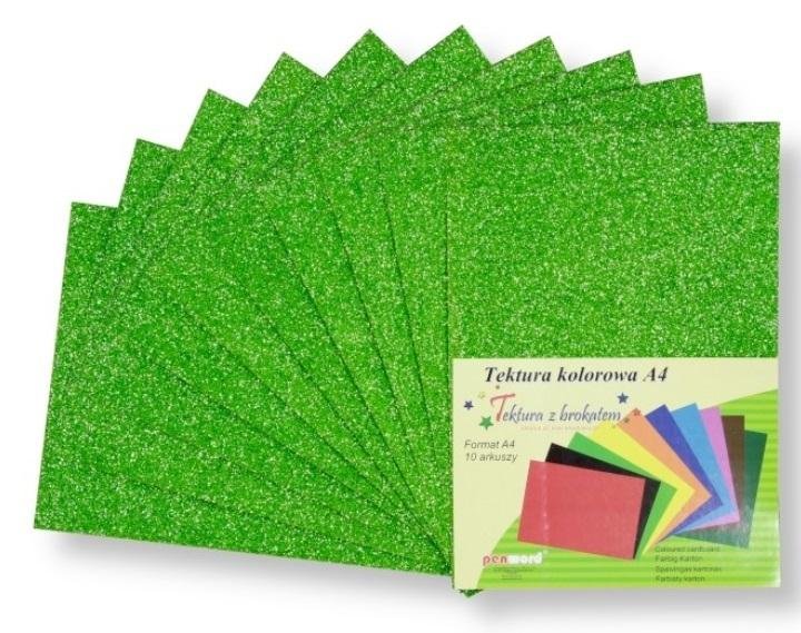 Tektura A4 gładka brokat zielona 10szt