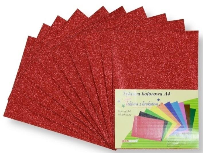 Tektura A4 gładka brokat czerwona 10szt przeczytaj całość