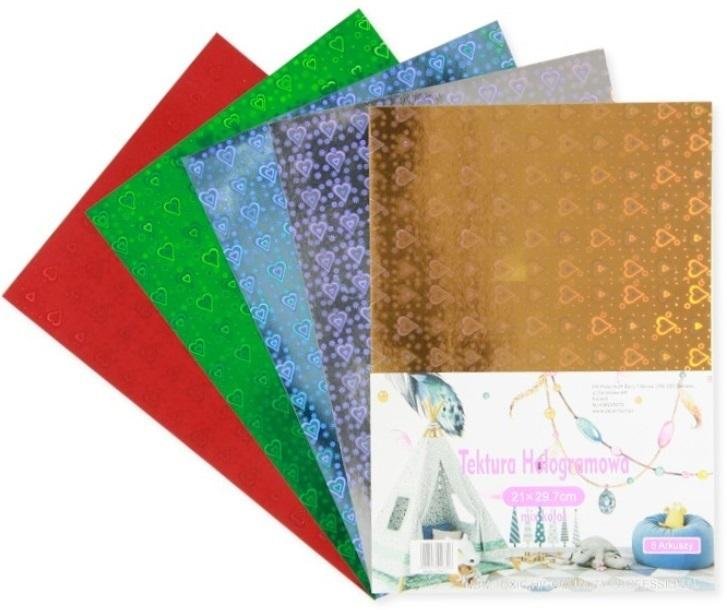 Tektura gładka hologramowa serca 21x29,7cm 5szt przeczytaj całość