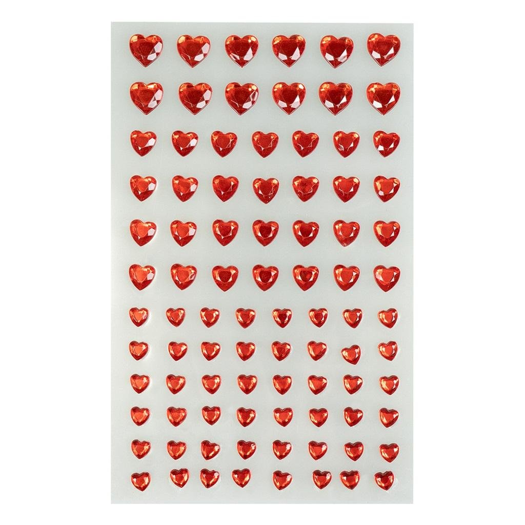 Dekoracyjne kryształki w kształcie serduszek. Ozdobne diamenciki samoprzylepne w kolorze czerwonym, mix rozmiarów do prac kreatywnych, szkolnych, dekoracji kartek urodzinowych, zaproszeń, albumów ze zdjęciami, przedmiotów. 84 sztuki na blistrze o wymiarze 12 cm x 25 cm. przeczytaj całość