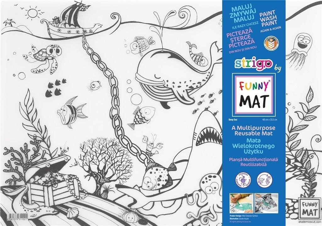 Mata transparentna Podwodny świat Funny Mat 48x33,5cmWodoodporna mata wielokrotnego użytku do rysowania, malowania i nauki. Idealny produkt do rozwijania wyobraźni, pobudzenia kreatywności, pełni też funkcje edukacyjne. Do wykorzystywania maty używaj flamastrów, które posiadają tusz na bazie...