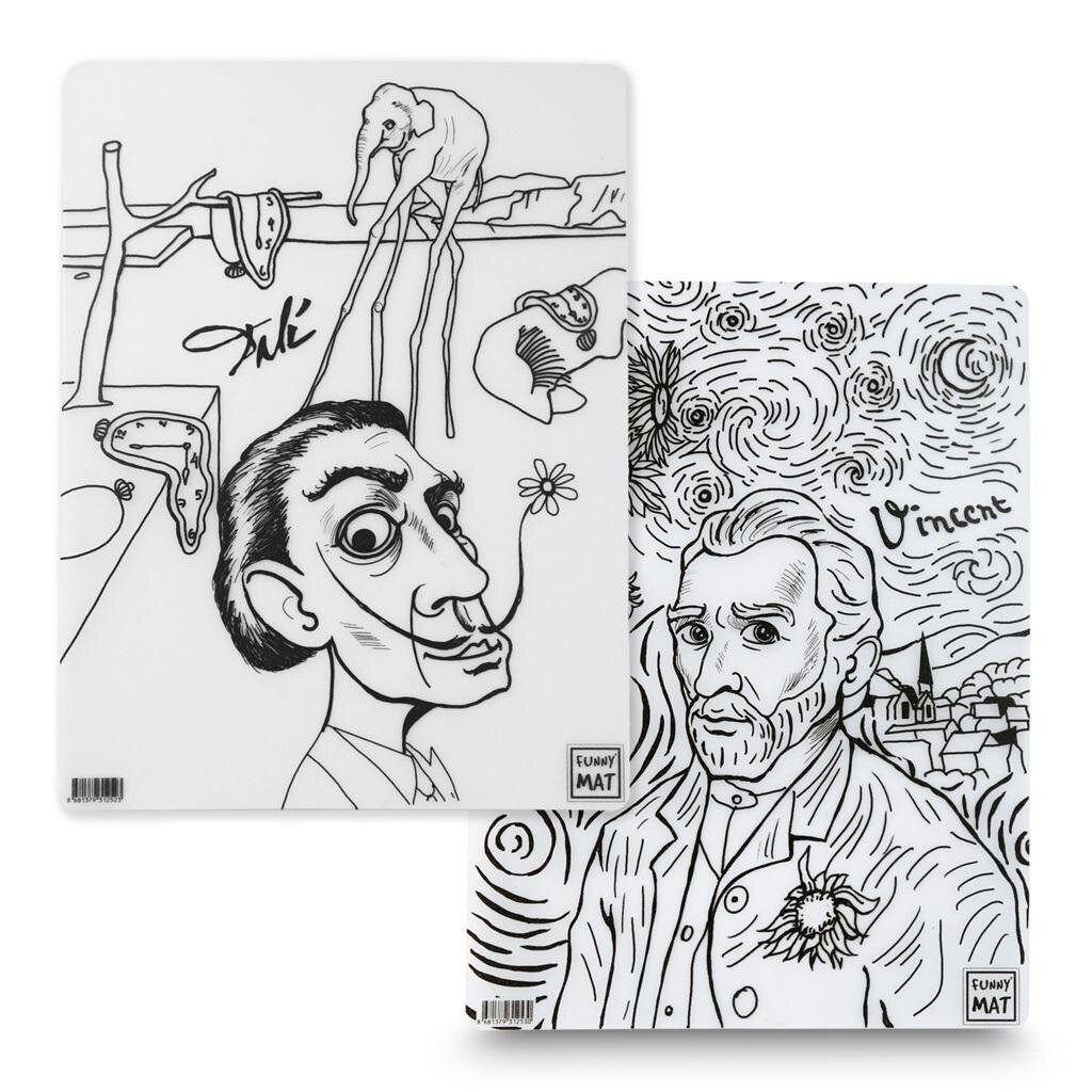 Mata transparentna 2szt Van Gogh, Salvador Dali Funny Mat 30x40cmWodoodporna mata wielokrotnego użytku do rysowania, malowania i nauki. Idealny produkt do rozwijania wyobraźni, pobudzenia kreatywności, pełni też funkcje edukacyjne. Do wykorzystywania maty używaj flamastrów, które posiadają tusz...