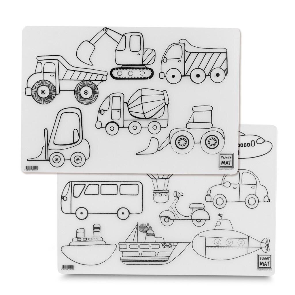 Mata transparentna 2szt Pojazdy i ciężarówki Funny Mat 33,5x48cmWodoodporna mata wielokrotnego użytku do rysowania, malowania i nauki. Idealny produkt do rozwijania wyobraźni, pobudzenia kreatywności, pełni też funkcje edukacyjne. Do wykorzystywania maty używaj flamastrów, które posiadają tusz na...