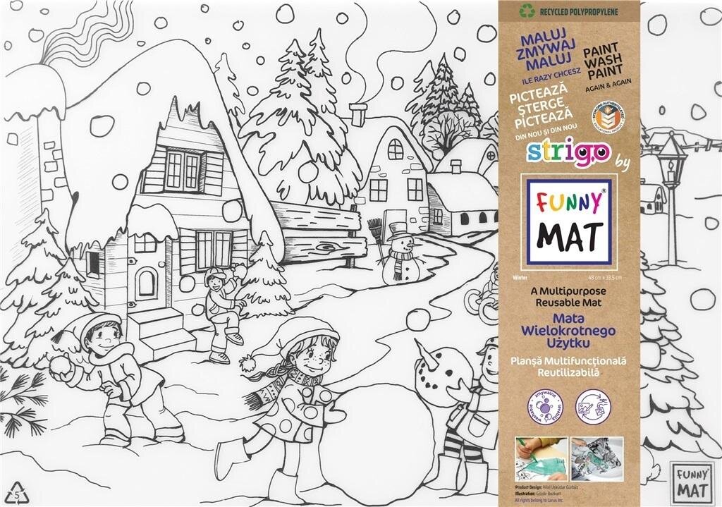 Mata biała Zima Funny Mat recycled 48x33,5cmWodoodporna mata wielokrotnego użytku do rysowania, malowania i nauki. Idealny produkt do rozwijania wyobraźni, pobudzenia kreatywności, pełni też funkcje edukacyjne. Do wykorzystywania maty używaj flamastrów, które posiadają tusz na bazie...