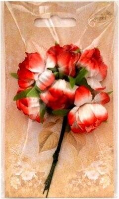 Kwiatki materiałowe czerwono-białe 3cm 6szt