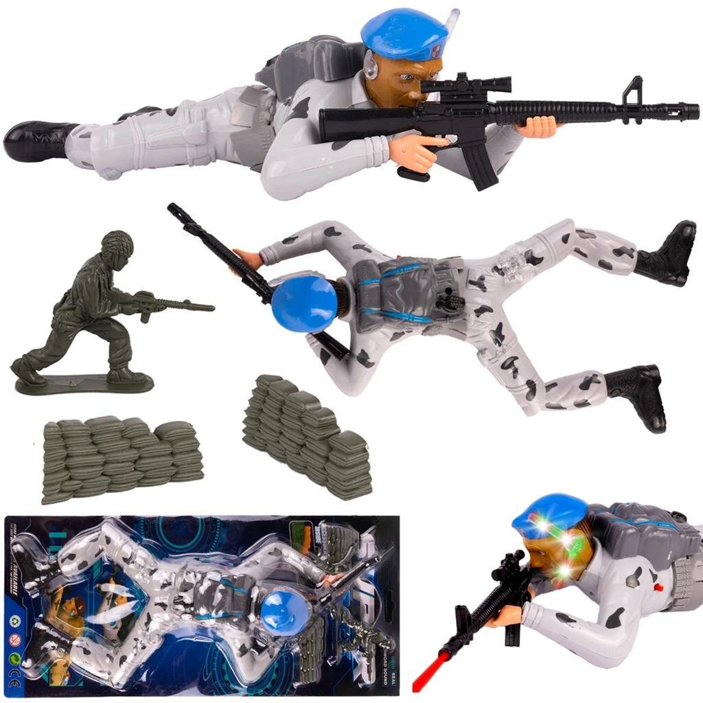 Żołnierz po włączeniu porusza nogami i czołga się po gładkiej powierzchni, następnie strzela z karabinu. Towarzyszą temu efekty świetlne oraz dźwiękowe - odgłosy strzałów. przeczytaj całość