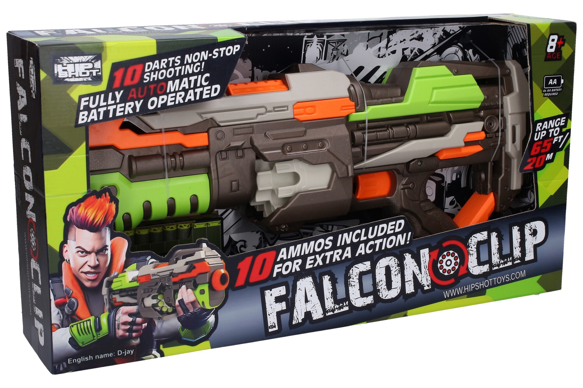 Puška s 10 pěnovými náboji. Rozměry 45x8,5x22 cm. 4xAA baterie součástí. Přepínač ON/OFF nad rukojetí. Dostřel 20 m. Obrázkový návod s popisem na zadní části obalu. przeczytaj całość