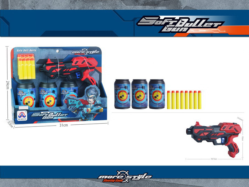 Pistole s pěnovými náboji a plechovkami 20 cm