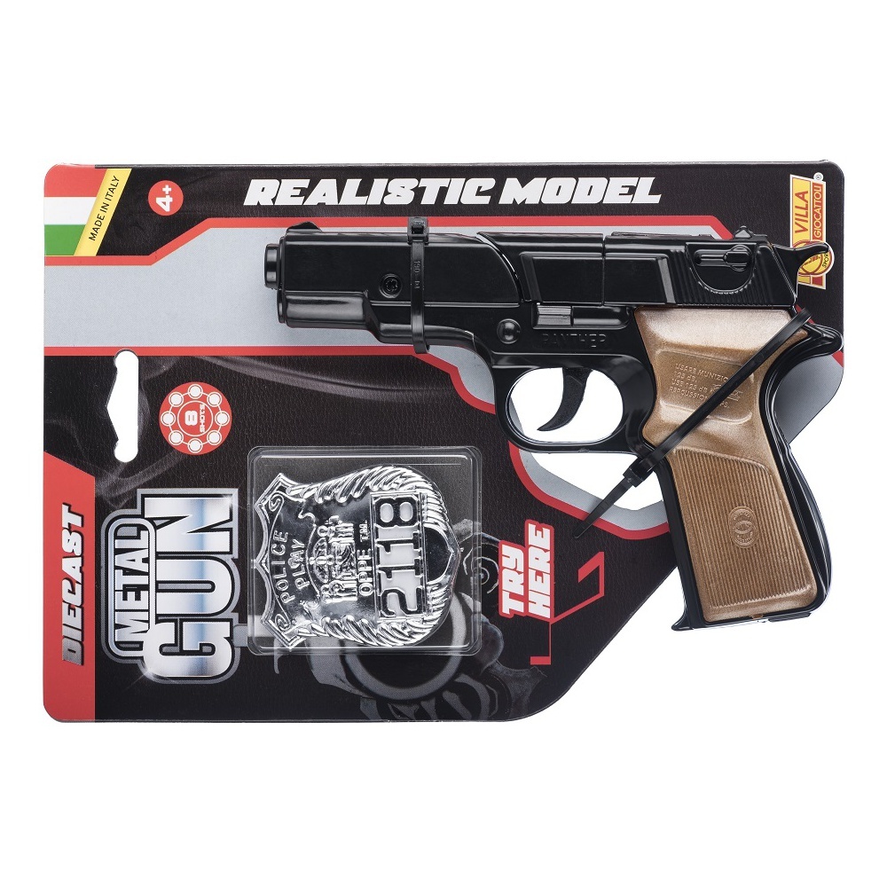 Jestli chceš být pravý policista? Tato celoková pistole je pro tebe ideální.Panther Pistole/kolt kovová, 8 ran (pistole na kapslíky, na kapsle) barva černá. Tato propracovaná pistole/kolt kovová, patří mezi oblíbené dětské kapslíkové zbraně. Délka 16 cm. S touto parádou budeš hvězdou každého...