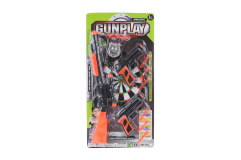 Velká sada zbraní. Materiál plast. Balení obsahuje 1 velkou pušku, 2 menší pistole , 9 nábojů s přísavkou a policejní odznak. Rozměry balení 28x55,5x2,5 cm. Věk 3+ przeczytaj całość