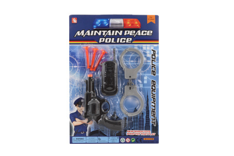 Policejní sada obsahuje pistol na náboje s přísavkou, pouta a vysílačku. Materiál plast. Baleno na kartě. Rozměry balení cca 26x37x3 cm. Věk 3+ przeczytaj całość