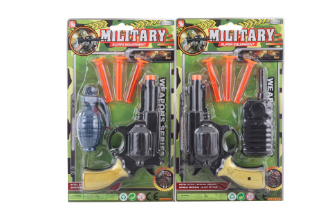 Plastová sada pistol s doplňky. Součástí balení jsou 3 náboje s přísavkou. Baleno na kartě. Rozměry balení 15x26x3 cm. Věk 3+ przeczytaj całość