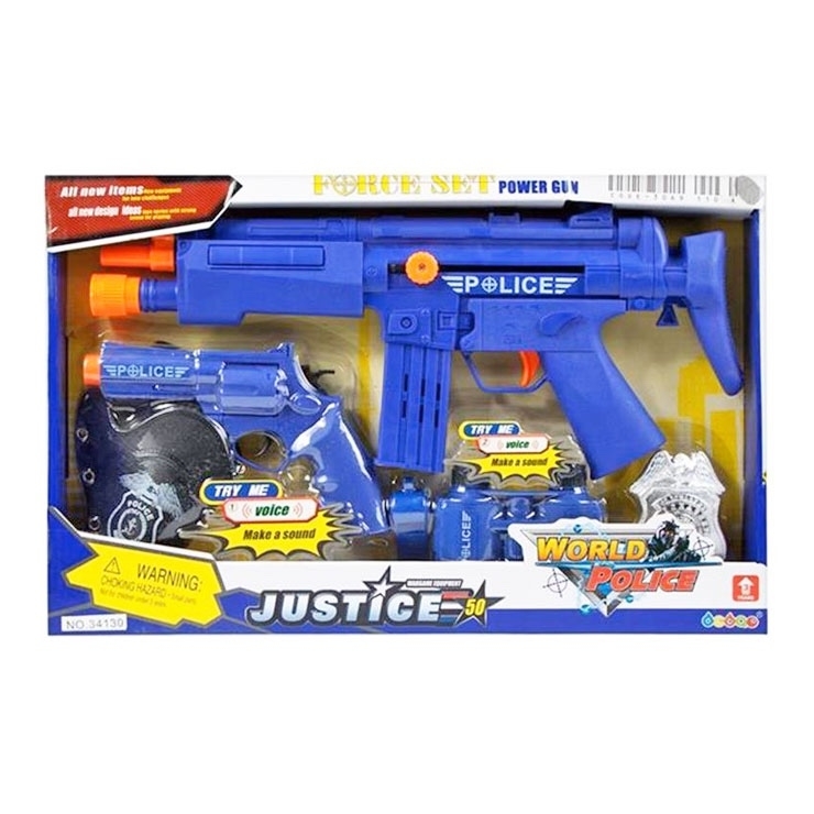Zastavte, policie! Ukažte svůj znak a pokud zloděj utíkáte, vystřelte varování do nebe. Puška a revolver mají zvukové efekty - spouštějí se stisknutím spouště. Sada obsahuje: kulomet, revolver, píšťalku, odznak, pouzdro a dalekohled. przeczytaj całość