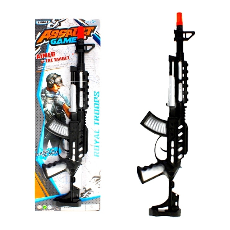 Hračka má zvukový efekt, který se ozve po stisku spouště.Rozměry produktu (D x V x H) [cm]: 43x11x3, rozměry balení (D x V x H) [cm]: 16x48x4, hmotnost produktu bez obalu [kg]: 0,10 kg, hmotnost produkt v balení [kg]: 0,11 kg. Nevyžaduje se žádná baterie.Výrobek je určen pro děti ve věku 3+.... przeczytaj całość