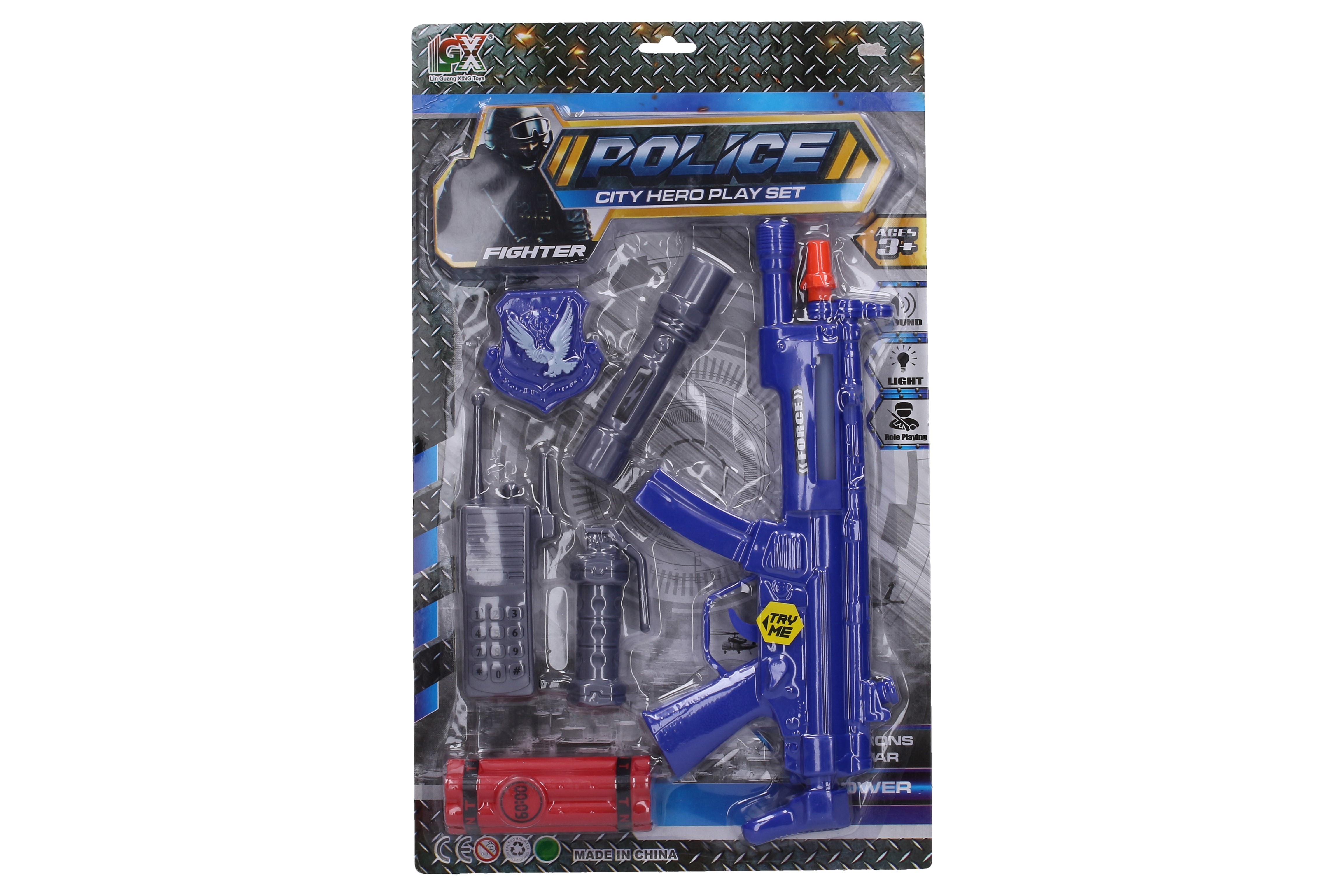 Vojenský set s efekty. Součástí puška, svítilna, odznak, vysílačka, granát, dynamit. Puška se světelnými a zvukovými efekty. 3xAG13 baterie součástí. przeczytaj całość