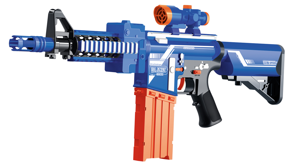 Blaze Storm je polo-automatická útočná puška speciálních vesmírných komand s prodlouženým zásobníkem na 12 nábojů a ohromujícím dostřelem! Stačí jen mačkat spoušť a jednotlivými výstřely kosit nepřátele!V balení najdeš 20 nábojů.Velikost: 71 cmBaterie 5xAA nejsou součástí balení. przeczytaj całość