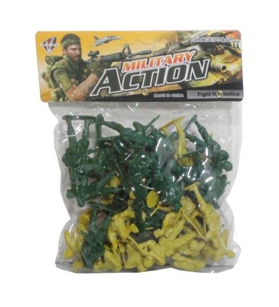 Zestaw figurek wojskowych (żołnierze) w dwóch kolorach. Produkt zapakowany w przezroczysty worek. Produkt dla dzieci powyżej 3 lat. Podane wymiary stanowią wymiar opakowania. przeczytaj całość