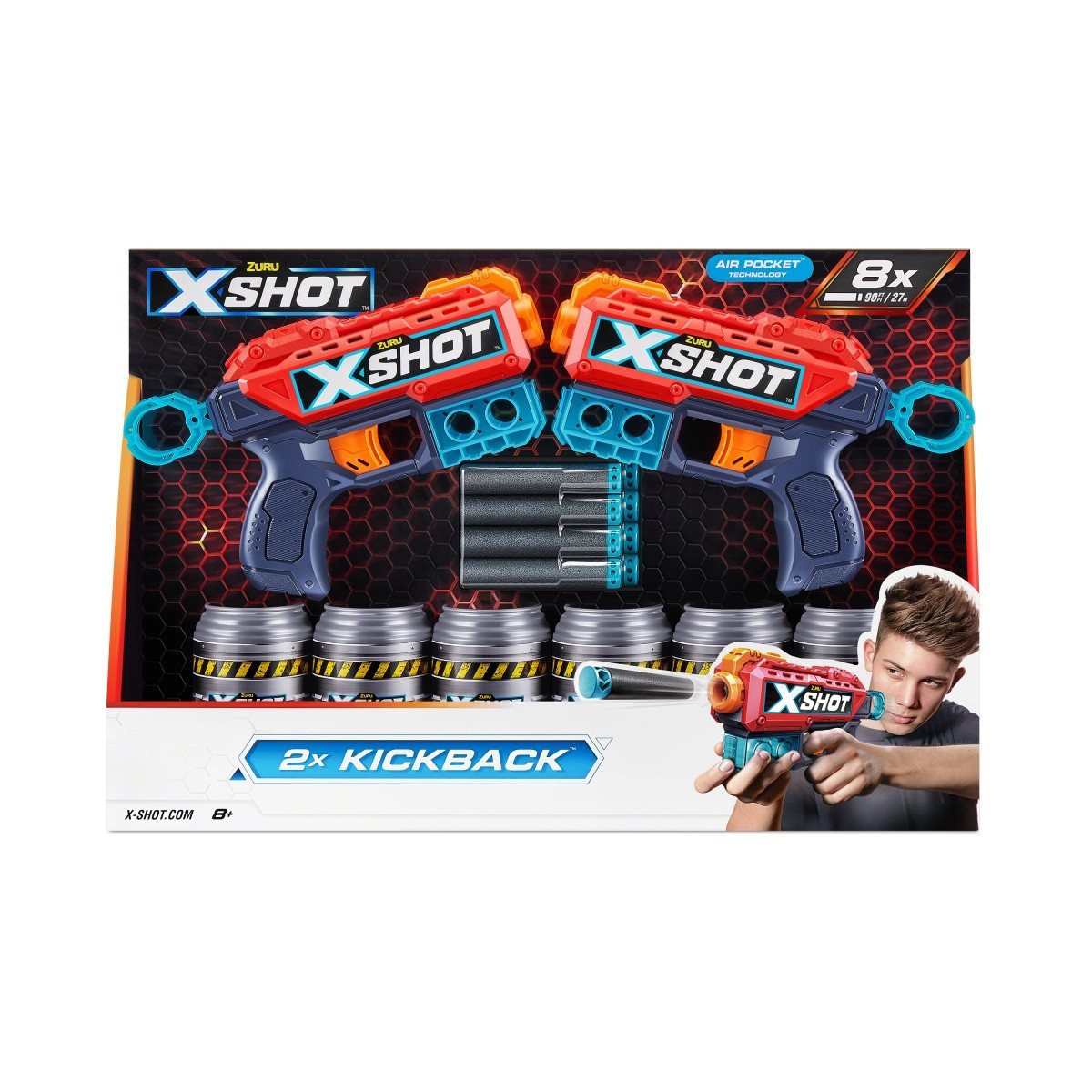 Zestaw wyrzutni Excel Double Kickback (8 strzałek, 6 puszek)