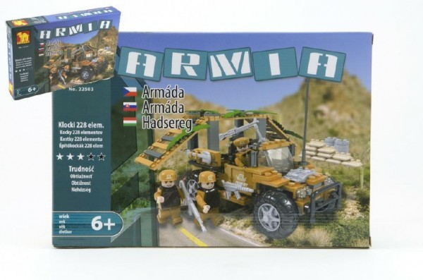 Stavebnice Dromader Vojáci Auto 22503 228ks v krabici 32x21,5x5cm