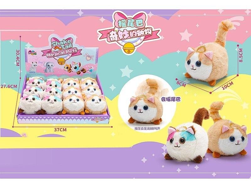 Kot pluszowy kręcący ogonem, 10x8,5x8cm, display 12szt. przeczytaj całość