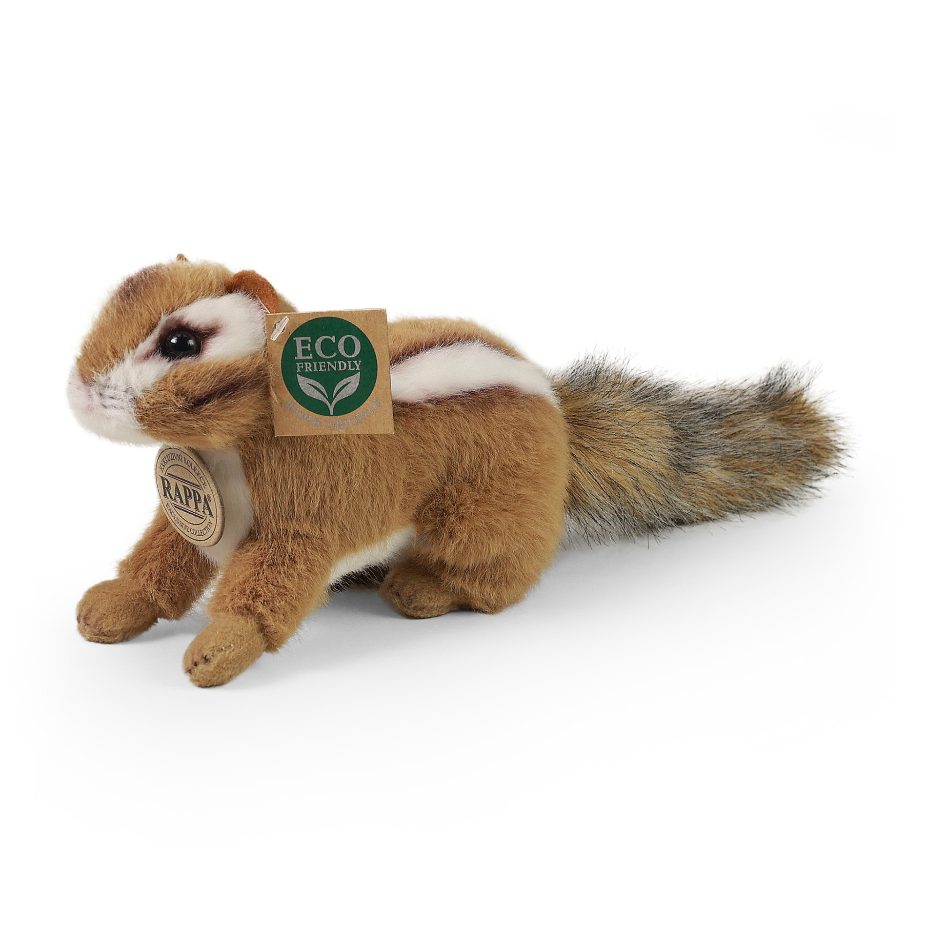 Urocza pluszowa wiewiórka pręgowana o wysokości 18 cm jest ręcznie uszyta z wysokiej jakości, delikatnego pluszu, dzięki czemu wygląda jak żywa. Jest częścią ekskluzywnej kolekcji zabawek pluszowych RAPPA. Co właściwie oznacza ECO-FRIENDLY? Wypełnienie zabawki pluszowej jest wykonane z recyklingowanych butelek PET. Ten materiał jest całkowicie bezpieczny, w dotyku nie do odróżnienia od standardowego wypełnienia i w pełni atestowany pod kątem bezpieczeństwa nawet dla najmłodszych. Postanowiliśmy obrać zieloną ścieżkę jak najmniej obciążającą środowisko - drogę ECO-FRIENDLY.
