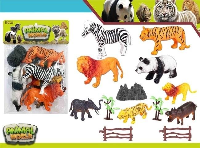 Odkryj fascynujący świat dzikich zwierząt z zestawem figurek "Animal World"! Ten bogaty zestaw zawiera szczegółowo wykonane figurki popularnych zwierząt z różnych kontynentów: majestatyczne lwy, pręgowane tygrysy, potężny słoń, charakterystyczne zebry, urocze pandy i sympatyczny hipopotam....