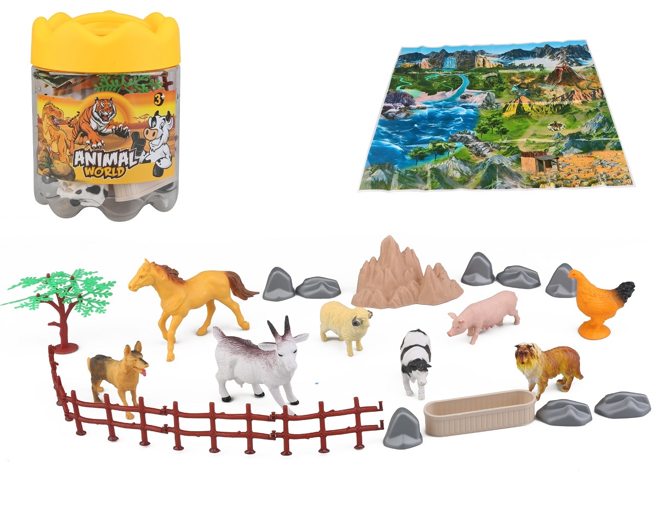 Malá plastová zvířátka, která můžeš vidět na farmě. Zvířátka jsou v přenosném platovém boxu. V balení 25 ks. Balení obsahuje podložka na hraní se zvířátky o velikosti 60x50 cm przeczytaj całość