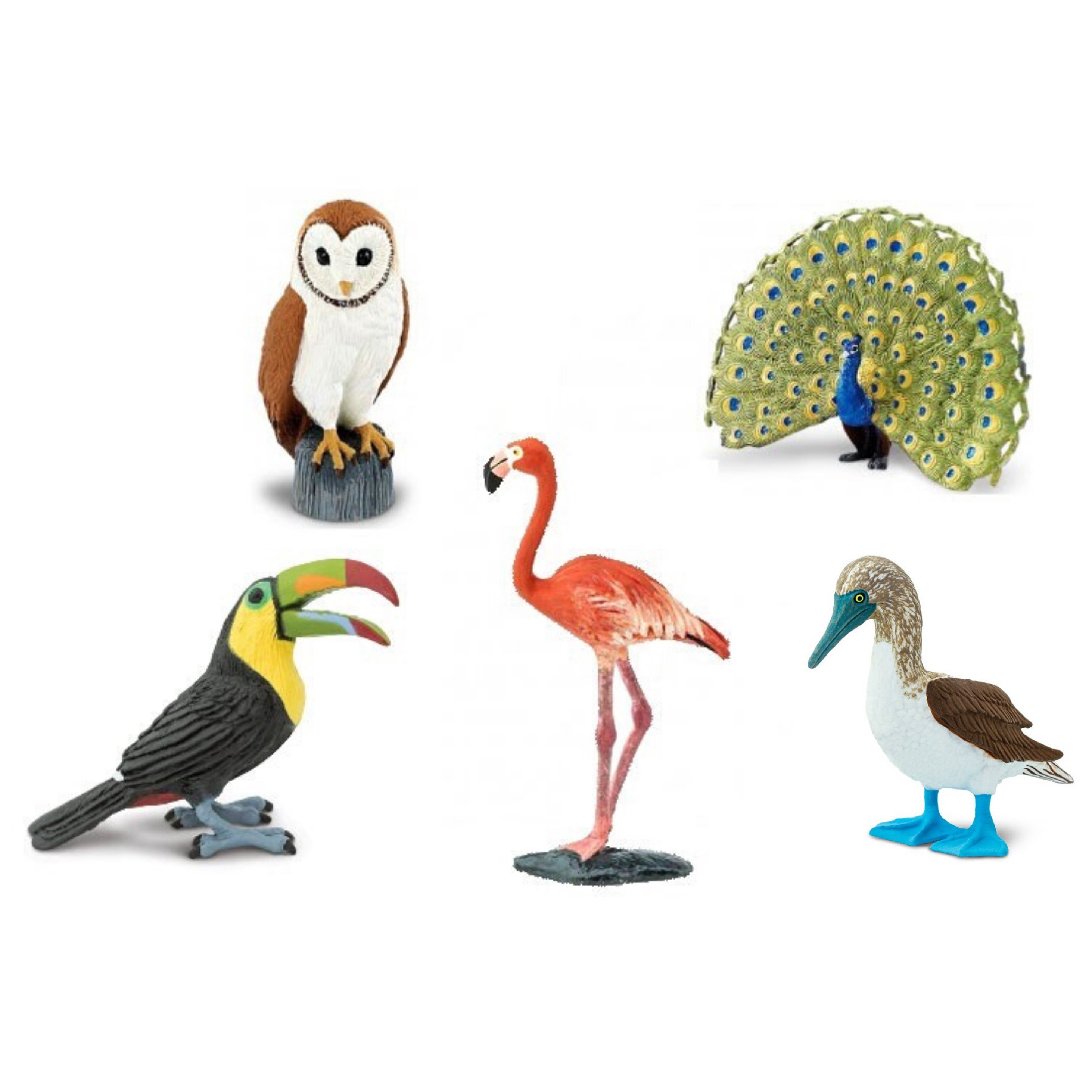 Balíček replik ptáků od firmy Safari Ltd., v kterém najdete tukana, sovu, plameňáka, tereje modronohého a páva.Tukan krátkozobý (SFS264129): 7 cm x 3,2 cm x 5 cm.Tento pták je kultovní pro svůj zobák, který je z kosti a je zubatý podél krajů. Ideální na trhání ovoce v tropických oblastech, kde se...