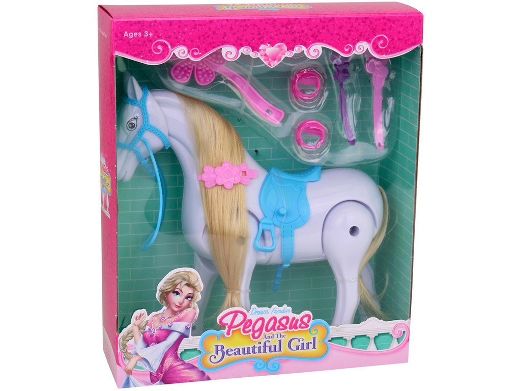 Kůň s příslušenstvím, na baterie, s hudbou, 18 x 9 x 5 cmHračka je určena pro děti 3+.Rozměr hračky je 18 x 9 x 5 cm.Materiál hračky je plast.Balení hračky je window box.Produkt je určený pro holky.Ke zprovoznění produktu jsou potřeba 2 AA baterie.Baterie nejsou součástí balení. przeczytaj całość