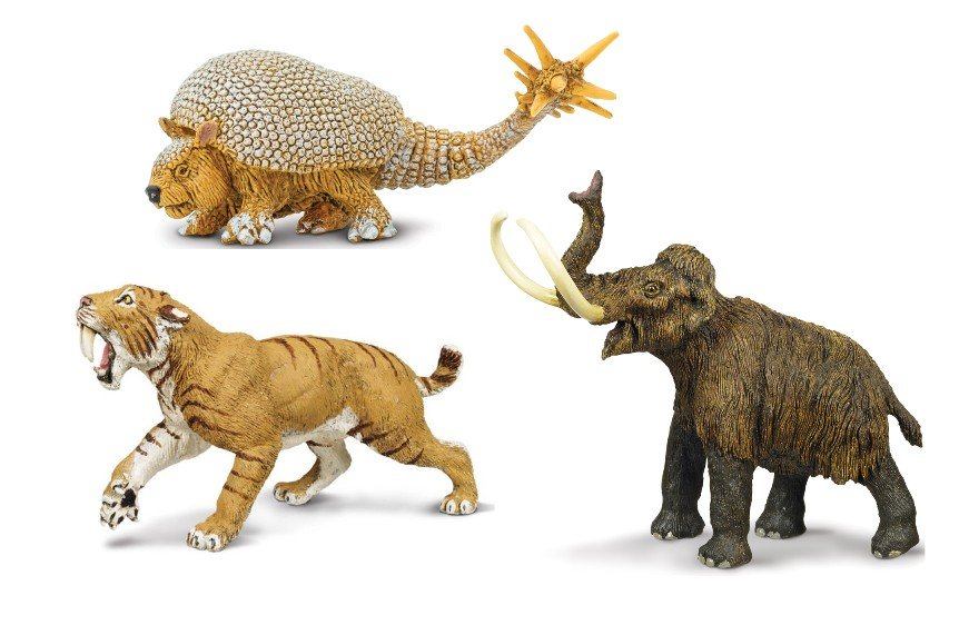 Balíček Cesta do pravěku od firmy Safari Ltd., v kterém najdete tygra, mamuta a doedicuruse. Šavlozubý tygr (SFS279729): 11,2 cm x 4,5 cm x 6,6 cm. Figurka vyhynulé kočkovité šelmy, tzv. "šavlozubých tygrů", připravena na kořist se svými drápy a otevřenou čelistí. Mamut srstnatý (SFS279929): 13...