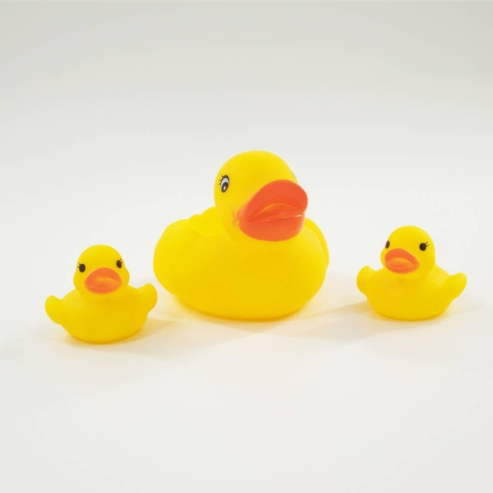 Mama kaczuszka z 3 malutkimi kaczuszkami. Po ściśnięciu wydobywają dźwięk. Z pewnością umilą kąpiel maluszkowi. Produkt przeznaczony dla dzieci powyżej 18 miesiąca życia. przeczytaj całość