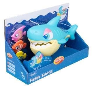 Nadciąga głodny rekin, który poszukuje zdobyczy! Przeżyj razem z nim ekscytującą przygodę, zmieniając kąpiel w super zabawę! Rozrzuć rybki w wodzie i za pomocą Rekina Łowcy z ruchomą szczęką, złap je wszystkie.Zabawka przeznaczona dla dzieci od 12 miesiąca życia.Cechy zabawki:naciśnij na płetwę...