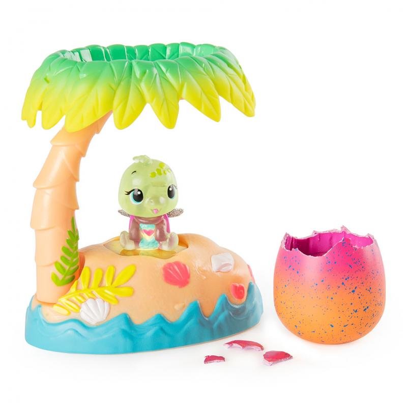 Ukaž jak tvoji Hatchimals září v nových plážových hnízdech! Na tato hnízda můžete své Hatchimals umístit hned dvěma způsoby. Dolů, na svítící základnu nebo do otáčejícího se palmového hnízda. Posaďte je do hnízda a otáčejte s palmou, zamáčkněte základnu a Hatchimals se rozzáří! Zmáčkněte ji...
