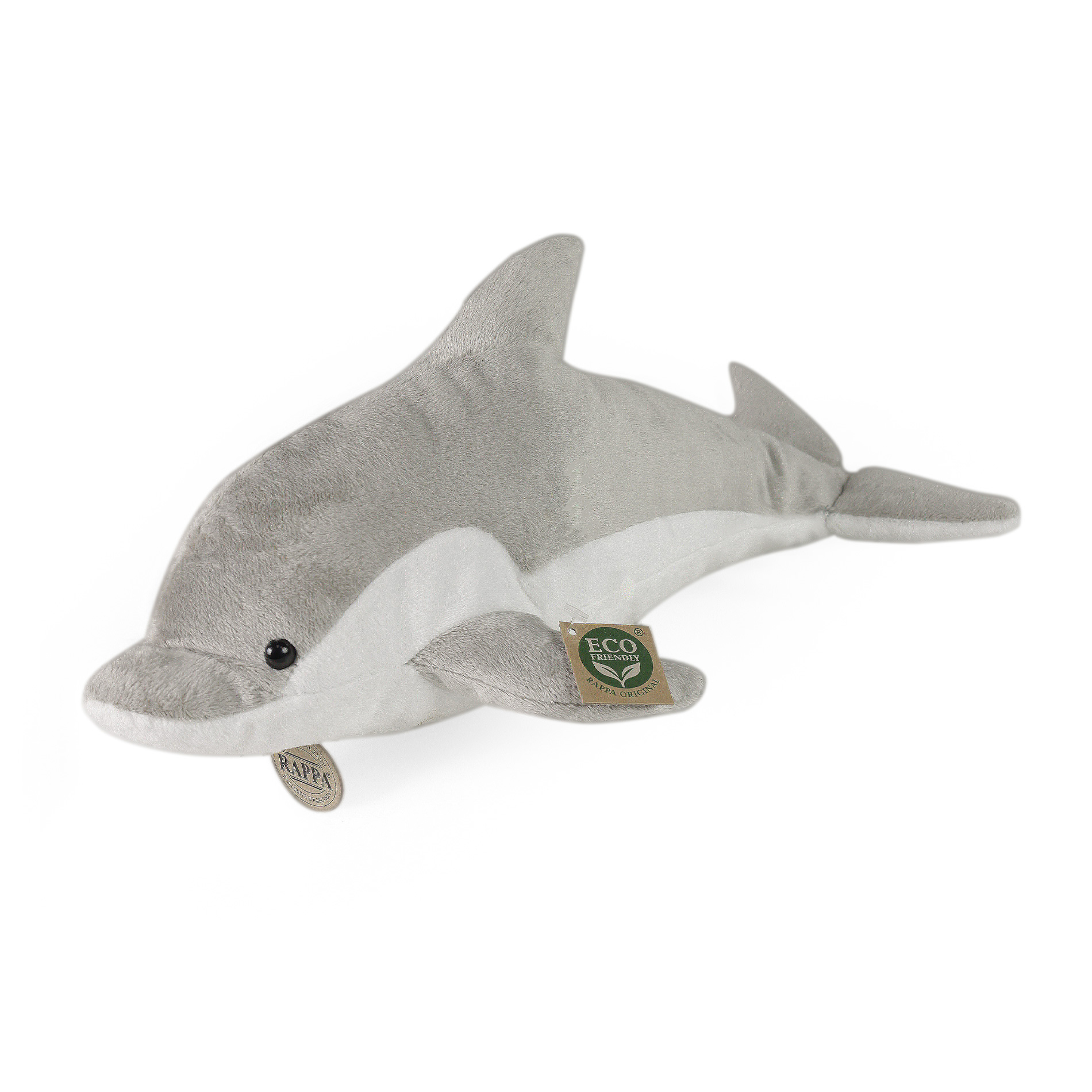 Piękny pluszowy delfin o rozmiarze 38 cm jest wykonany z wysokiej jakości pluszu i stanowi część ekskluzywnej kolekcji pluszowych zabawek. Główne cechy: realistyczne zwierzątko, ręczne wykonanie, wysokiej jakości plusz, ECO-FRIENDLY wypełnienie Co to właściwie oznacza ECO-FRIENDLY? Wypełnienie pluszowej zabawki jest wykonane z recyklingowanych butelek PET. Ten materiał jest całkowicie bezpieczny, w dotyku nie do odróżnienia od standardowego wypełnienia i w pełni atestowany pod kątem bezpieczeństwa nawet najmniejszych. Zdecydowaliśmy się iść zieloną drogą jak najmniej obciążającą środowisko - drogą ECO-FRIENDLY.