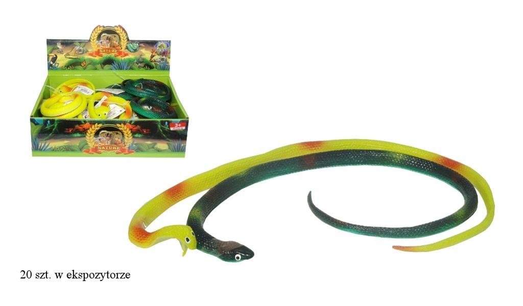 Gumowe węże do zabawy. Zwierzęta można delikatnie rozciągać. Produkt występuje w kilku wersjach kolorystycznych, wybierany losowo. Cena dotyczy jednej sztuki. przeczytaj całość
