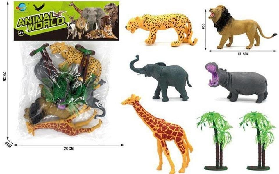 Zestaw figurek zwierząt, które można znaleźć w Afryce i nie tylko. W zestawie znajduje się 5 figurek m.in.: słoń, żyrafa, lew, hipopotam, gepard oraz 2 drzewka. Produkt zapakowany w przezroczysty worek. Zabawka dla dzieci od 3 lat. Podane wymiary są wymiarami opakowania. przeczytaj całość