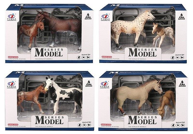 zestaw 2 figurek koni - klacz i źrebie, realistyczny wygląd, 4 asort; 22x10x14,5cm, W/B przeczytaj całość
