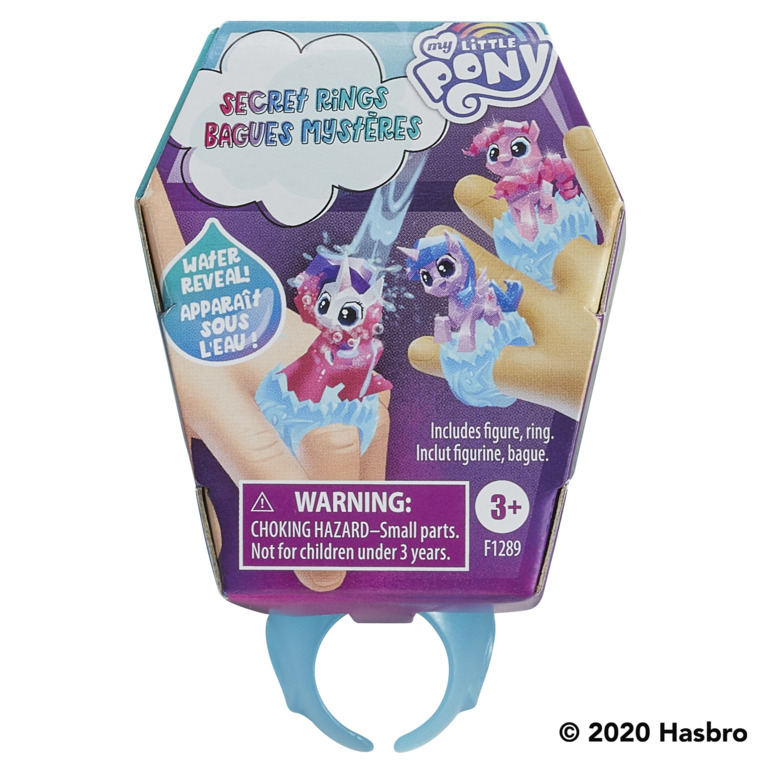 Který poník se skrývá uvnitř? Pšššt, to je tajemství! Každé balení obsahuje 1 figurku poníka, který čeká na objevení svým novým nejlepším kamarádem. Otevřete krabičku ve tvaru diamantu, vyjměte hedvábný papír a odkryjte postavu smytím vrstvy barvy! Po odhalení položte figurku na základnu prstenu...