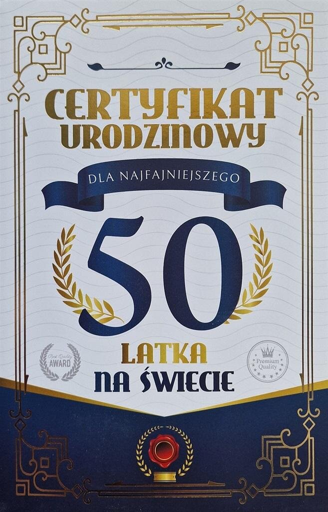 Karnet Certyfikat Urodzinowy 50 urodziny męskie