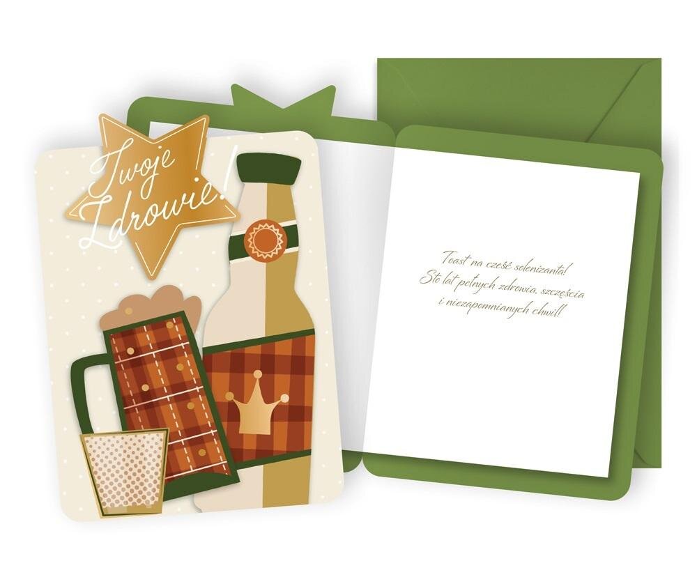 Kartka Dream Cards "Twoje zdrowie" DK-1200Kartka B6 z ozdobnej serii Dream Cards na urodziny - nieduża, ale robi wrażenie dzięki atrakcyjnej kolorystyce i ciekawym zdobieniom.To idealny wybór łączący przyjazną cenę z jakością.Cechy szczególne:wielkość: B6, 16.6 x 11.7 cm po złożeniu,koperta: w...